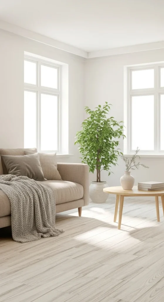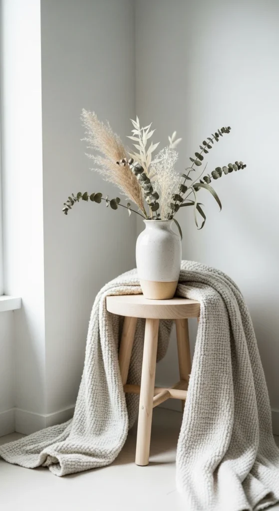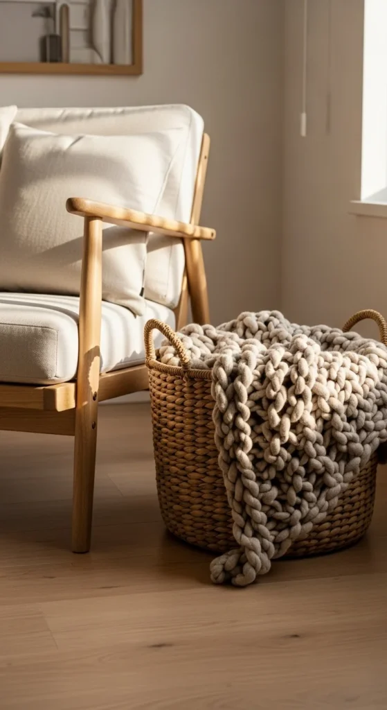 Scandinavian homes aren’t cold — they’re warm and inviting. Natural textures instantly soften clean lines and make a space feel lived-in.