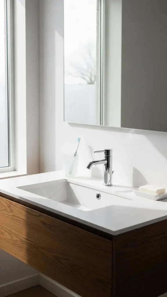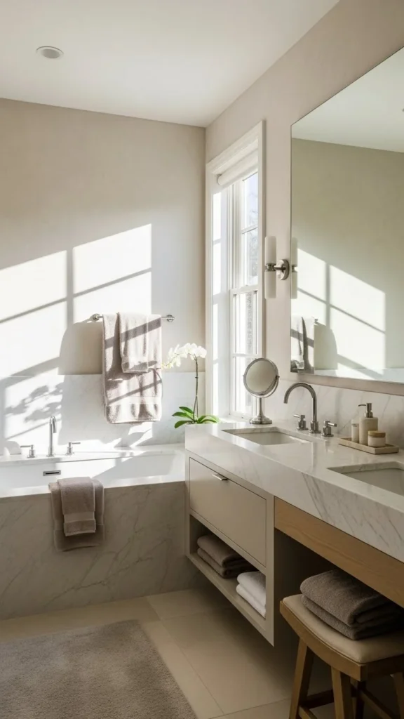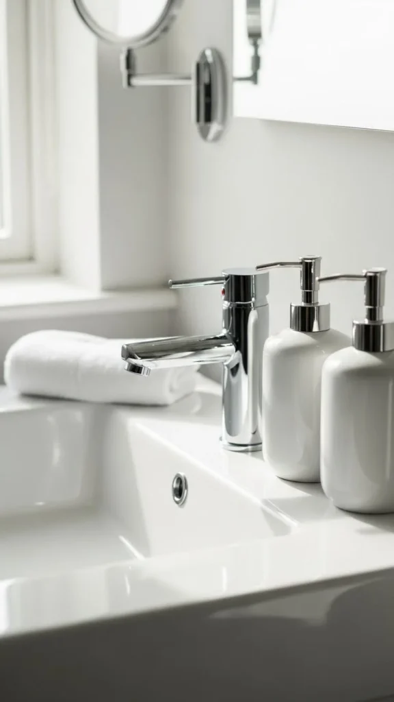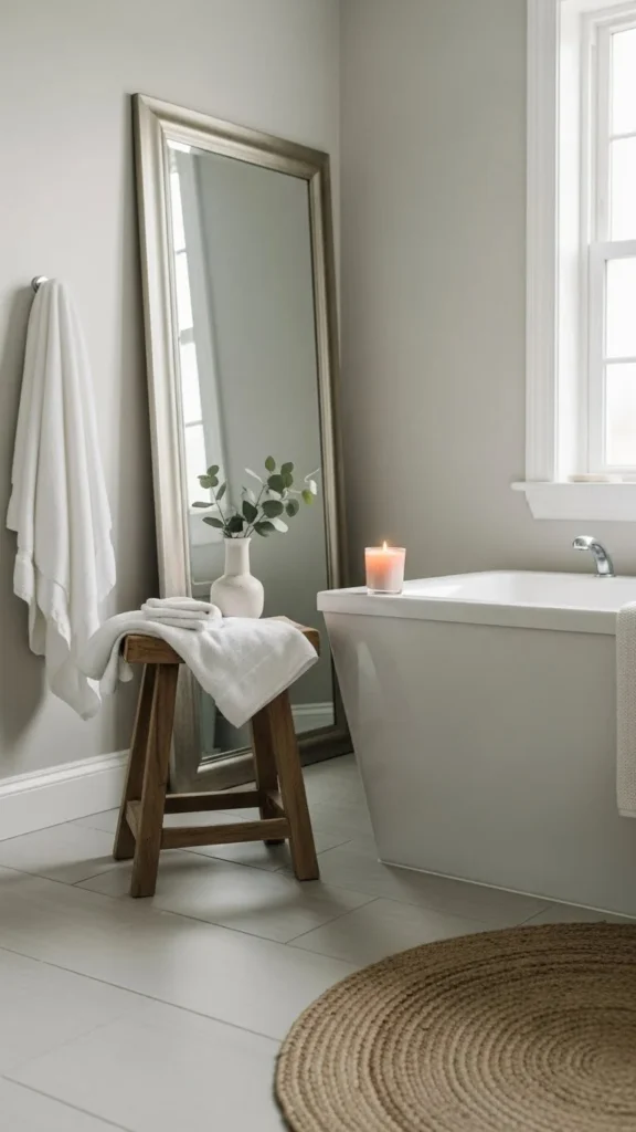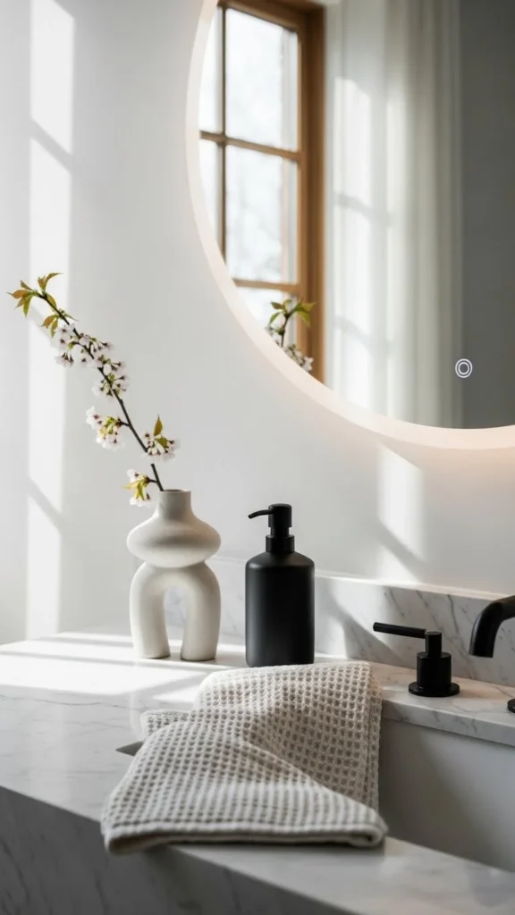 Harsh lighting can feel uninviting. Use warm bulbs or add side lighting near mirrors.
