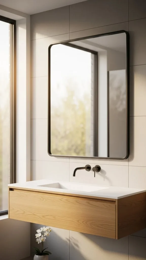 Framed mirrors feel more finished. Choose slim frames in light tones.