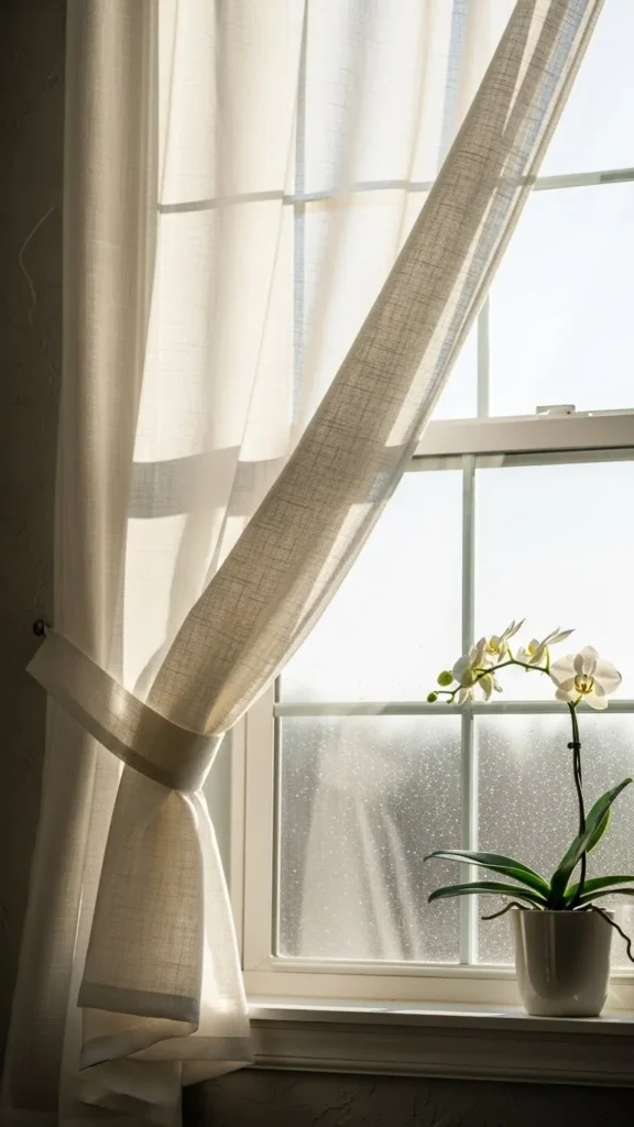 Avoid bold patterns. Subtle texture adds interest without distraction. Washable curtains are practical and long-lasting.