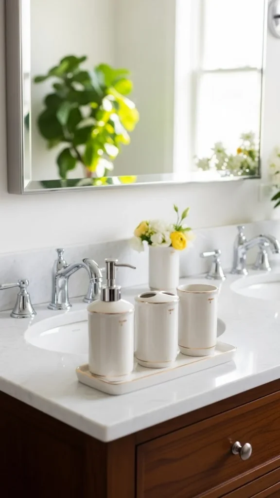 Toothbrush holders, trays, and dispensers look better when coordinated.
