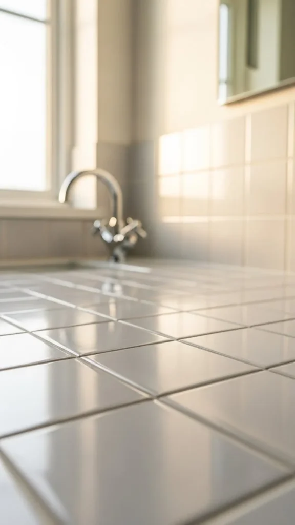 Clean tile lines make bathrooms look cared for. Focus on grout and corners.