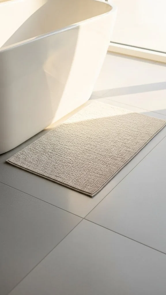 One mat is usually enough. Simple floor textiles keep the space grounded.