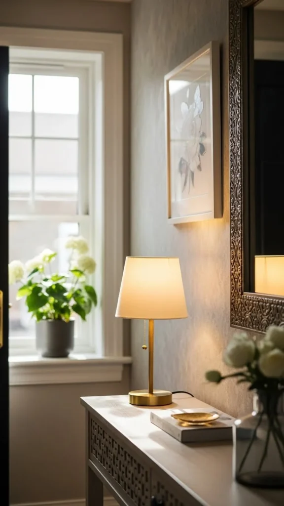 Good lighting makes the entry feel welcoming. Use warm bulbs and simple fixtures.