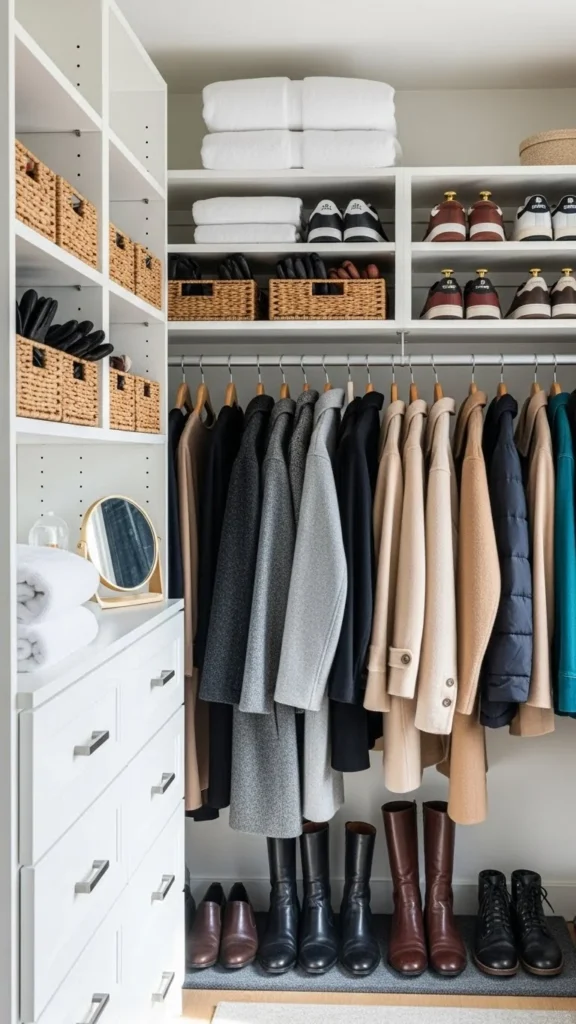 Store off-season coats elsewhere. Keep only what you use daily.
