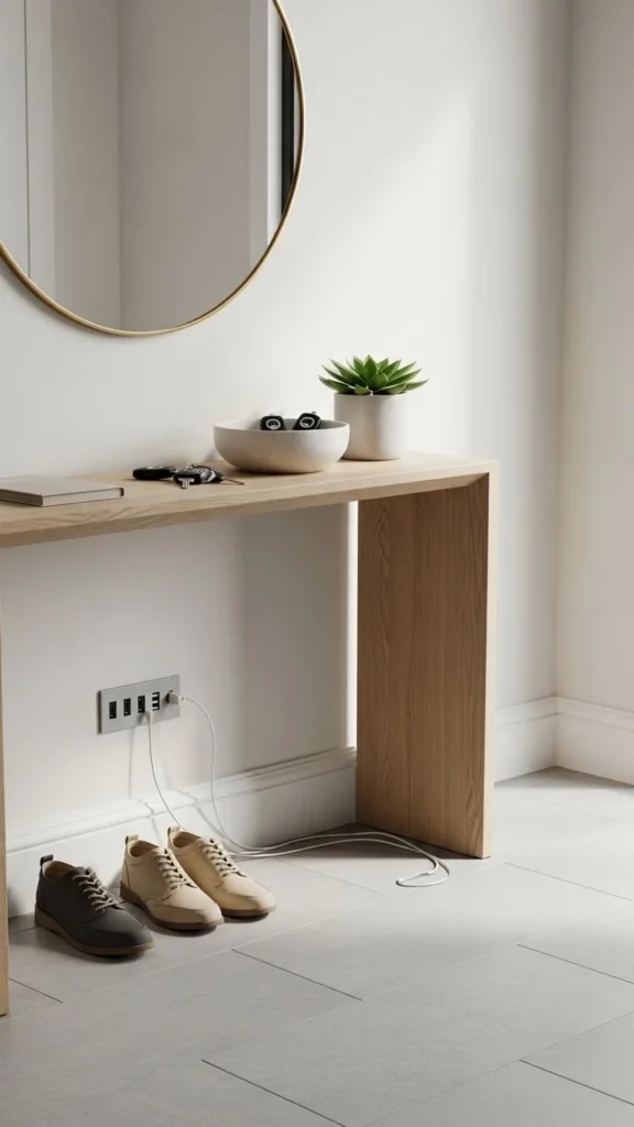 If you charge devices near the entry, hide cords in drawers or baskets.