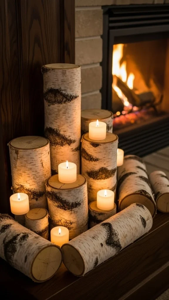 2. Birch Log Stack With Taper Candles
