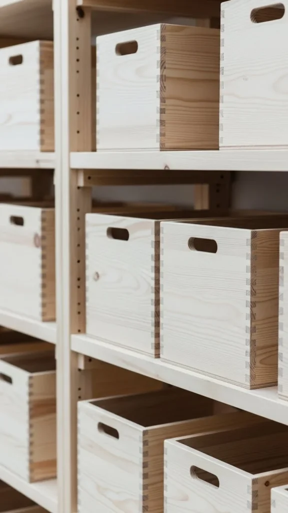 Choose simple box shapes or open shelves. DIY builds using pine crates or basic frames keep costs down.