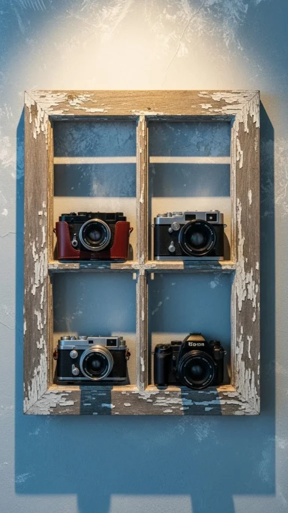 Use old window frames or faux versions.