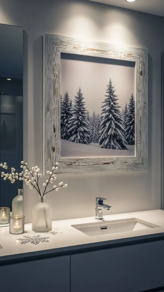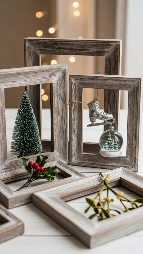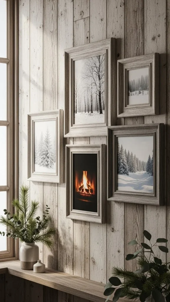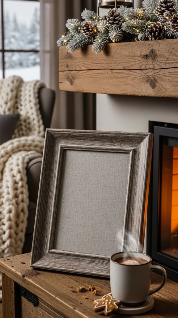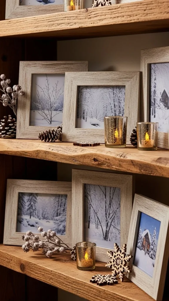 Barnwood frames feel honest and lived-in. Their uneven edges and aged color suit winter themes naturally. You can buy reclaimed wood frames or make your own using pallet boards cut to size.