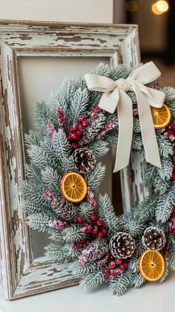 19. Rustic Frames Paired With Winter Wreaths