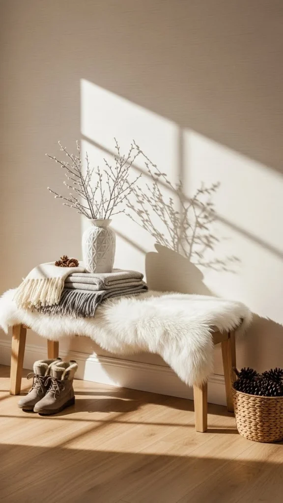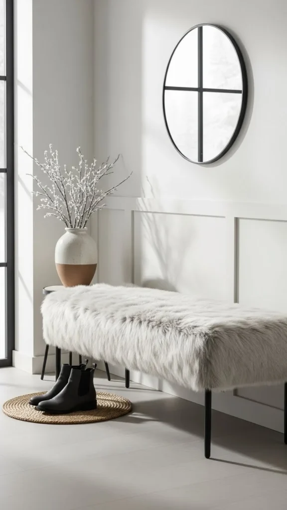 Plush faux-fur bench seating brings comfort and texture to winter entryways without complex changes. These ideas show how simple frames, smart materials, and easy DIY updates create welcoming spaces. From slim apartment benches to family-friendly mudroom setups, each option focuses on everyday use and realistic upkeep. Choose designs that match your space, work within your budget, and support daily routines while keeping winter entryways calm and inviting.
