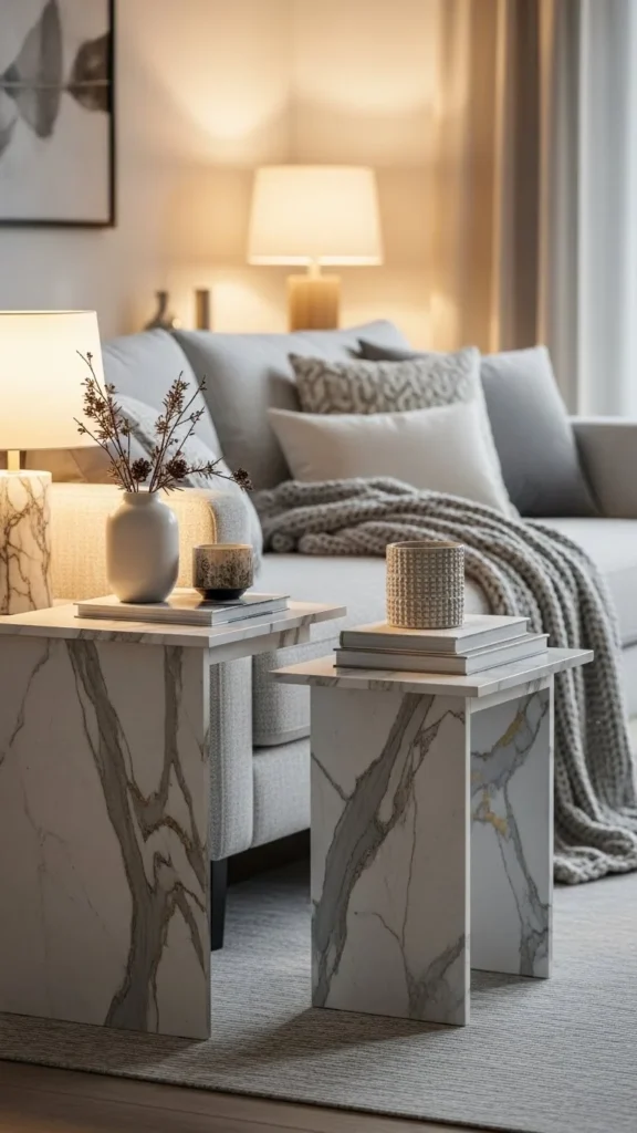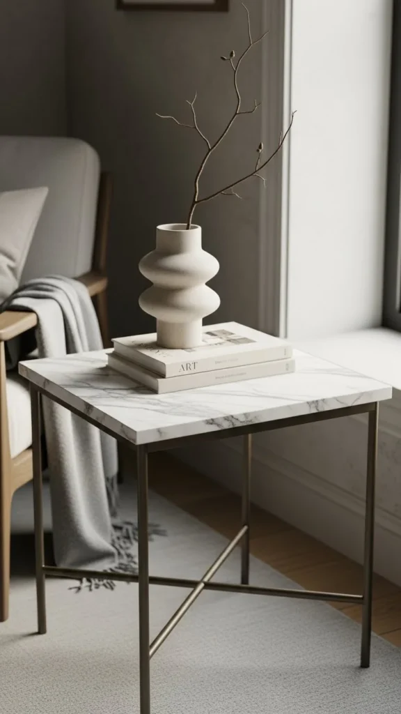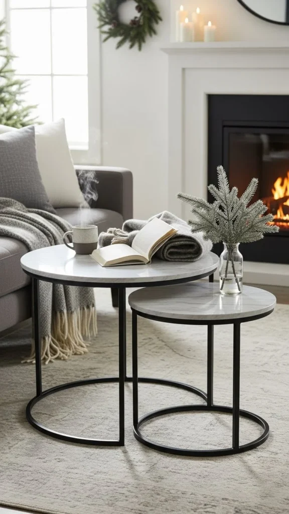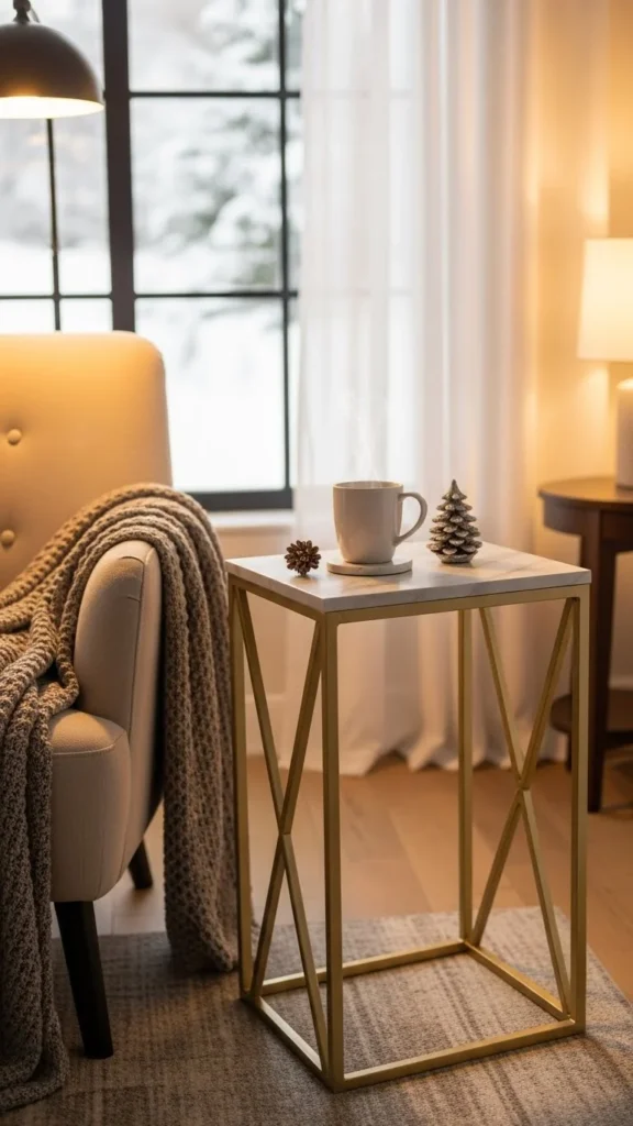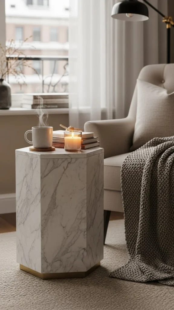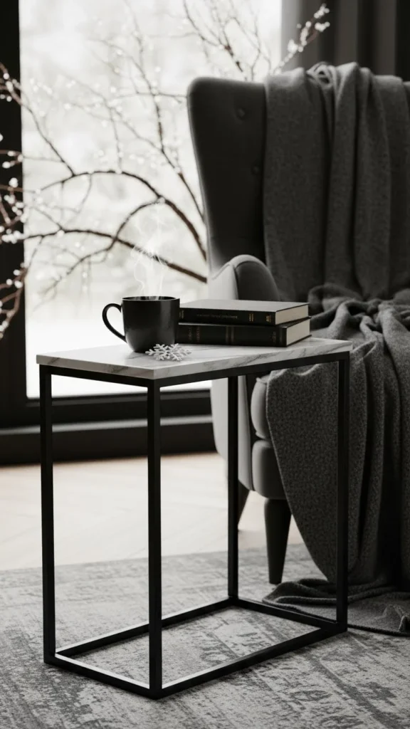 Faux-marble side tables suit winter interiors by adding smooth surfaces, light reflection, and calm structure. With many affordable materials and easy DIY options, this look fits everyday homes without heavy spending. Starting with one well-placed table can support cozy winter living while keeping rooms tidy and visually balanced.