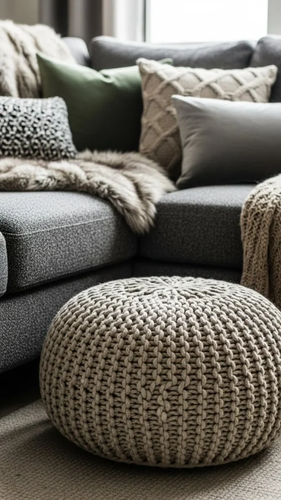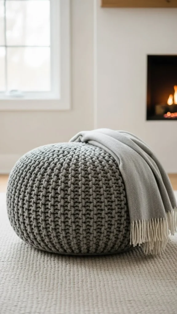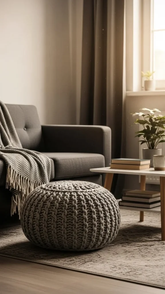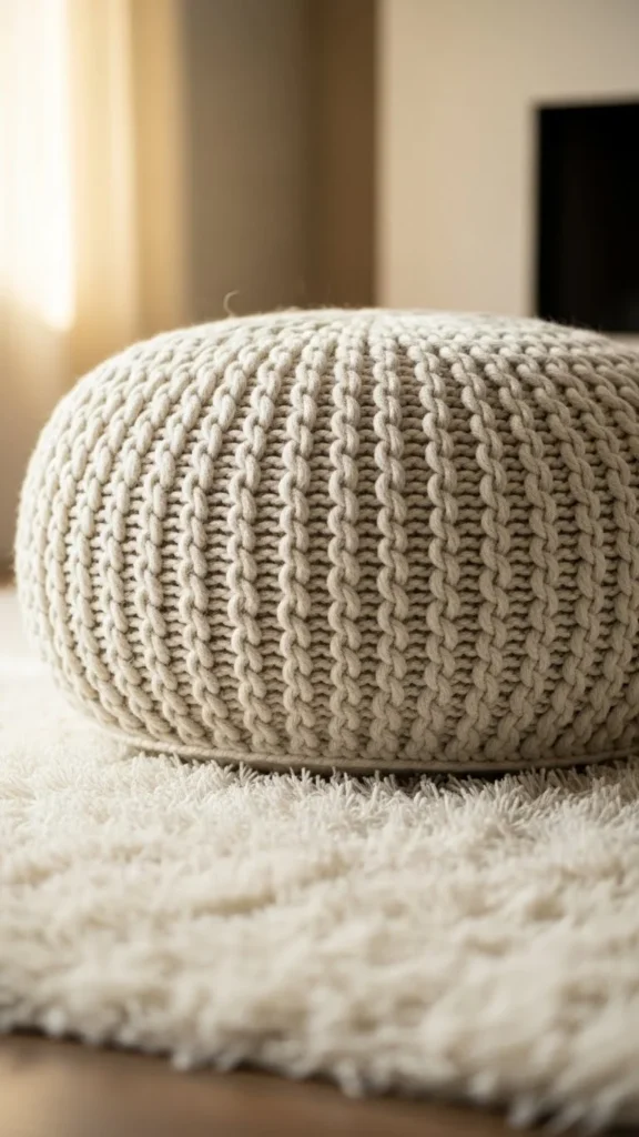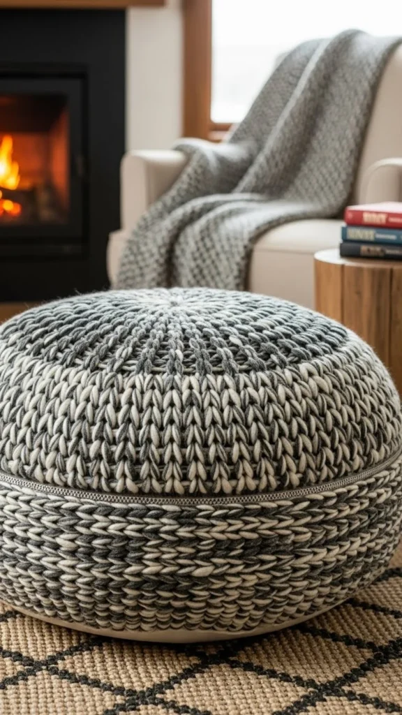13. Compact Knit Pouf for Small Spaces