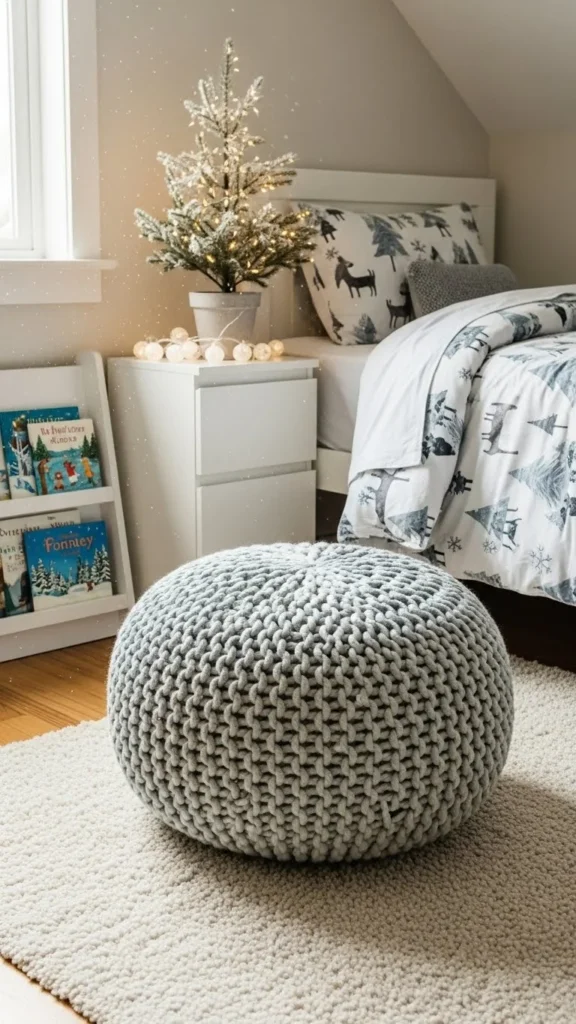 19. Chunky Knit Pouf for Kids’ Rooms