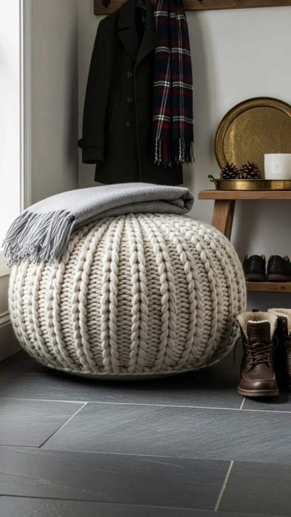 22. Knit Pouf for Entryways