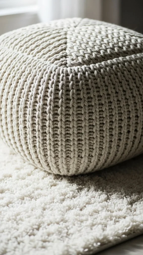 24. Minimal Knit Pouf With Clean Shape