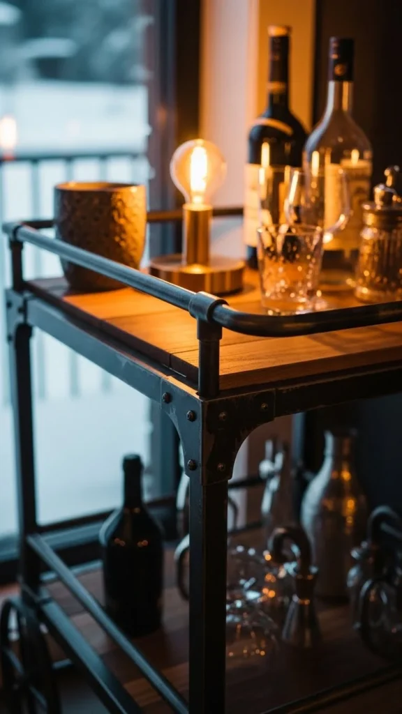 19. Iron & Wood Bar Cart With Soft Lighting