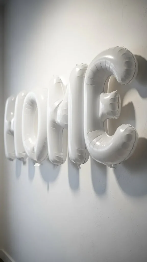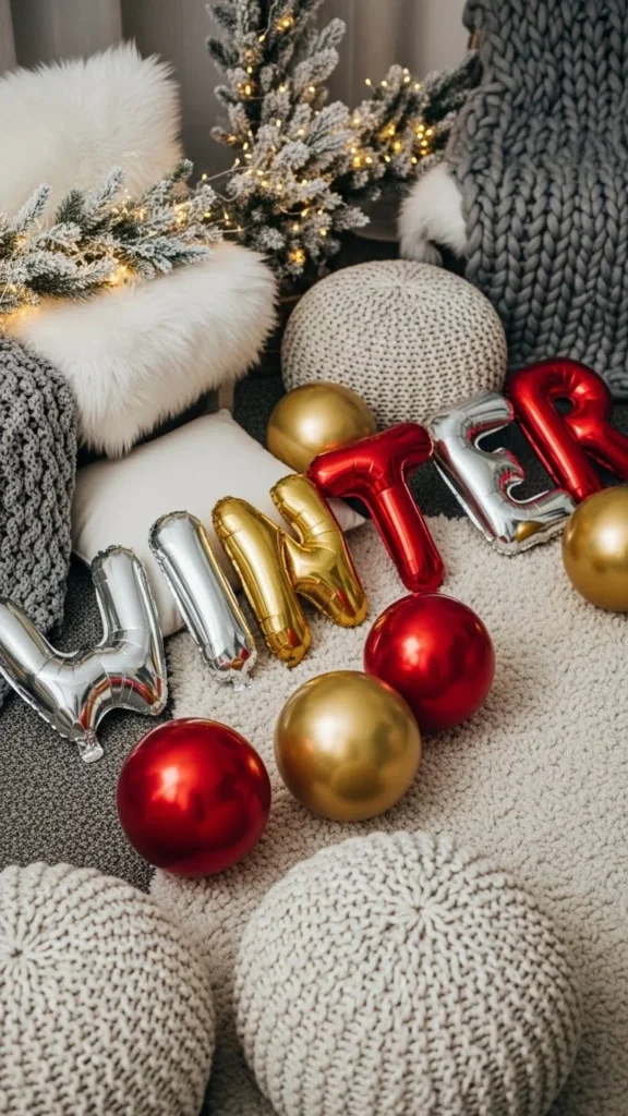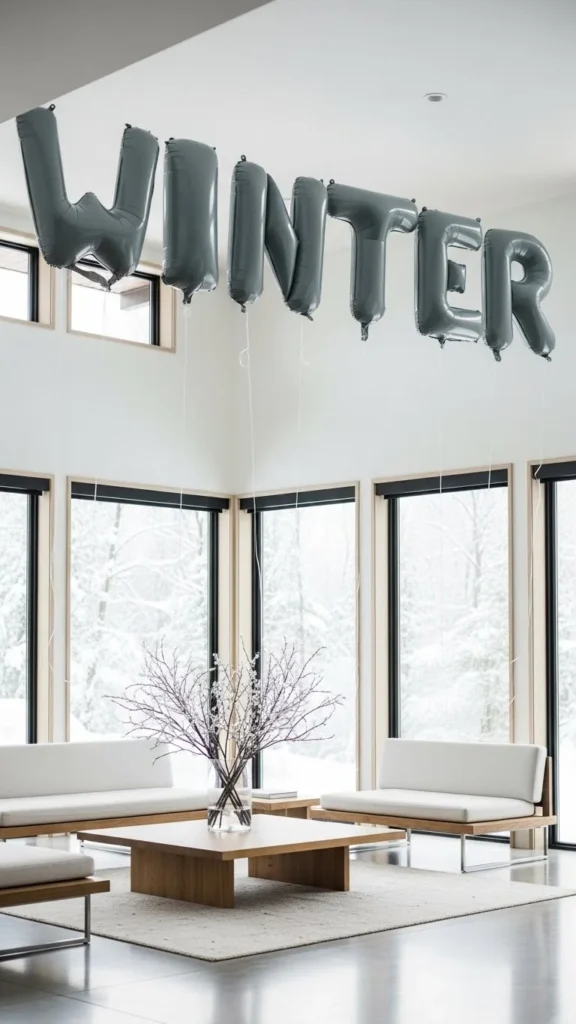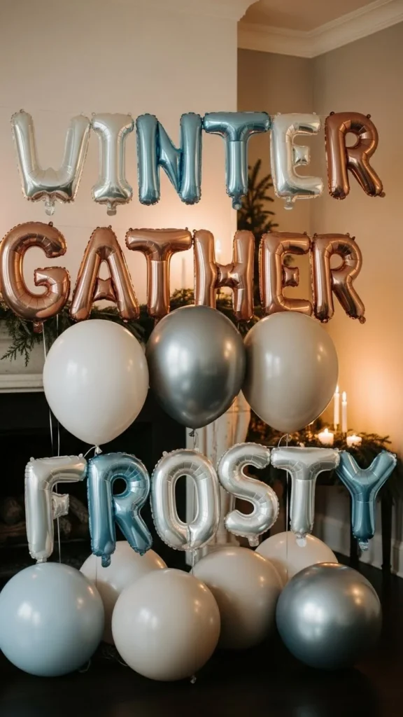White balloon letters echo winter tones beautifully. They work well against beige, gray, or cream walls. Inflate them slightly under full size to avoid overstretching. Use removable hooks or low-tack tape. Budget packs often include extra letters, which helps with spacing. This setup suits birthdays and winter gatherings without overpowering the room. Pair with soft textiles nearby to keep the look warm.