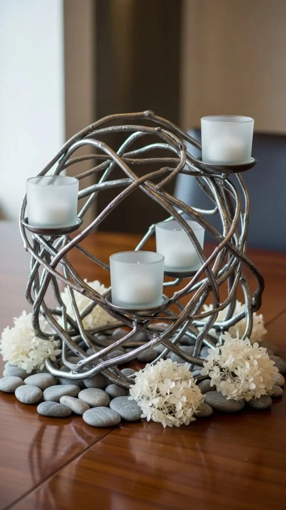 10.Metallic Twig and Stone Base Arrangement