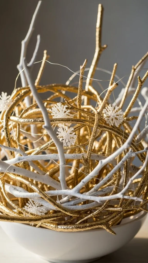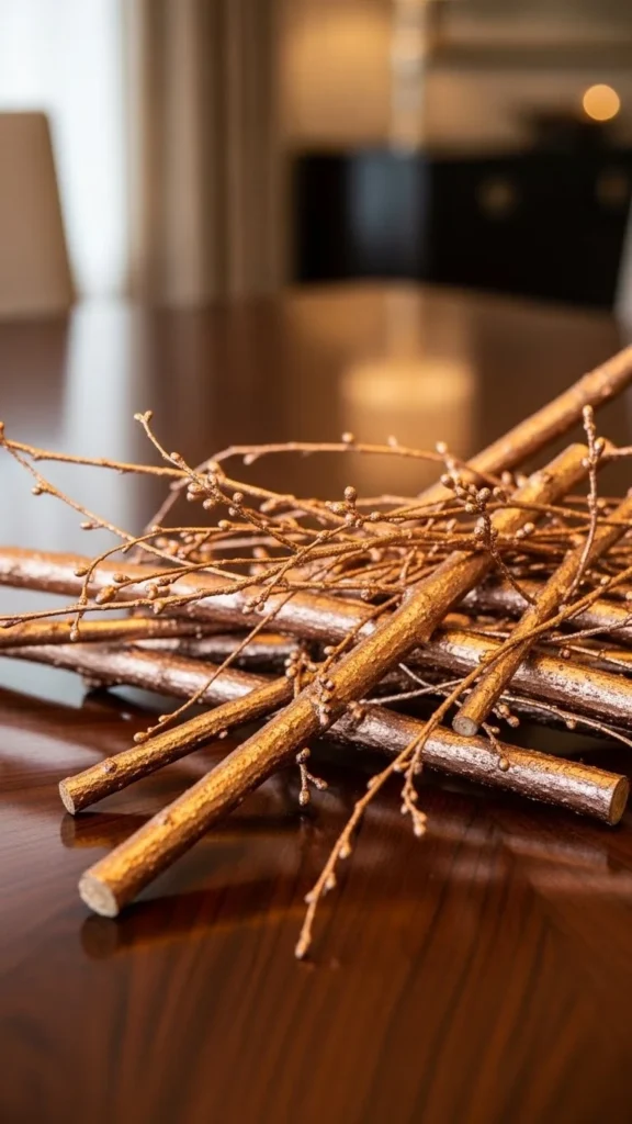 Mixing metals adds depth without extra materials. Paint some twigs silver, others gold or bronze. Keep finishes muted.