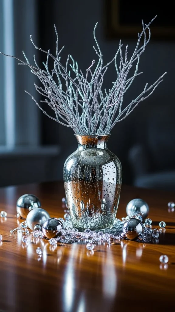 4.Mercury Glass Vase With Metallic Twigs