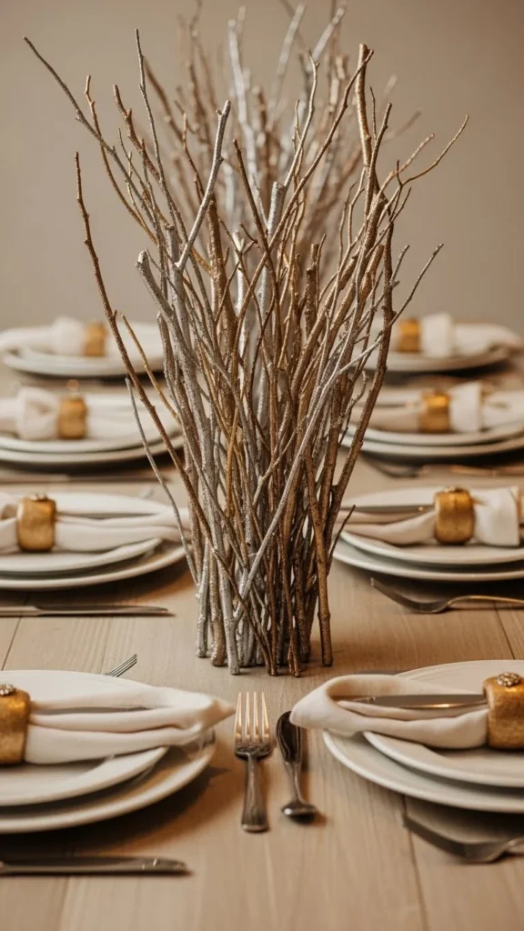 9.Gold-Tipped Natural Twig Centrepiece