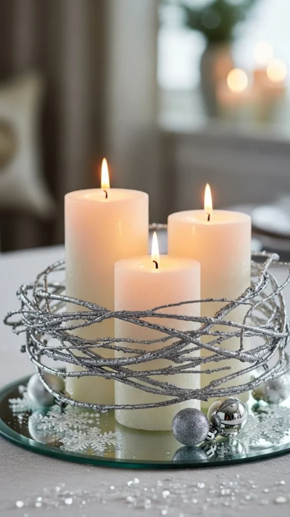 6.Frosted Metallic Twig and Candle Centrepiece