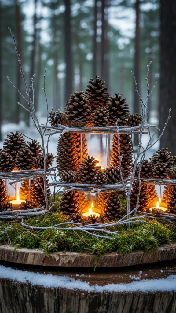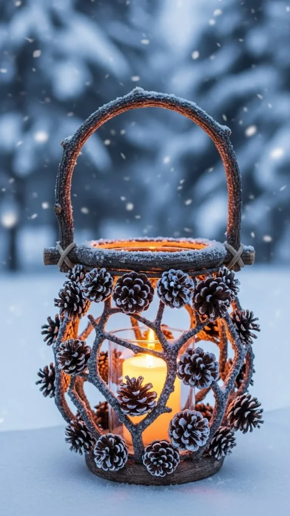 16.Pine-Cone Lanterns with Snowy Branch Handles
