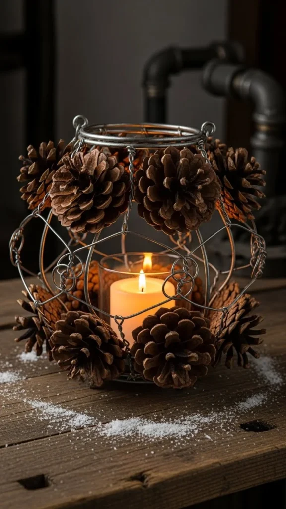 11.Pine-Cone Lanterns with Metal Accents