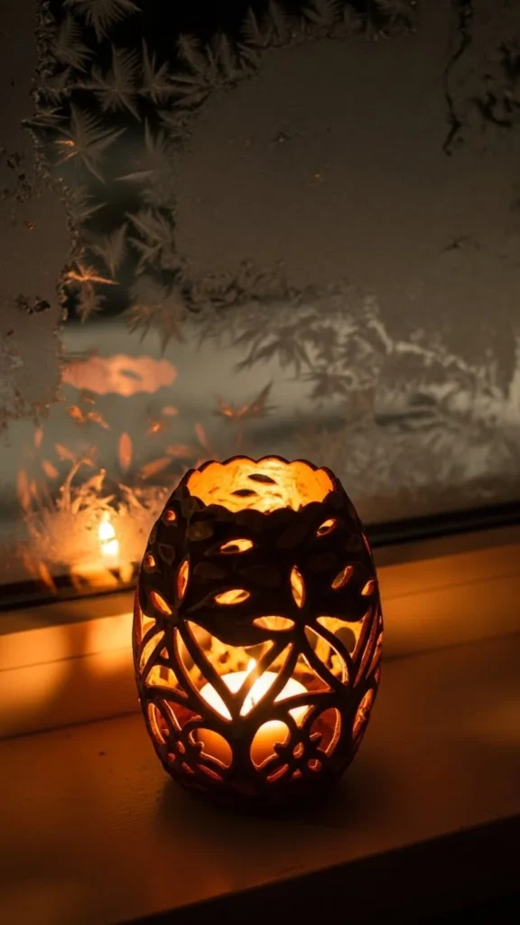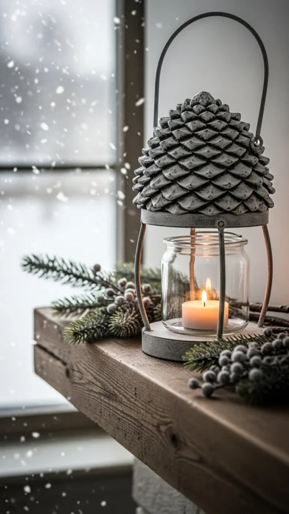 12.Window-Sill Pine-Cone Lantern Glow