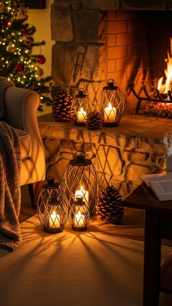 These lanterns work well on shelves, stairs, or entry tables. Group three together for balance. Keep spacing loose so light can spread. This setup feels calm and winter-ready without extra effort.