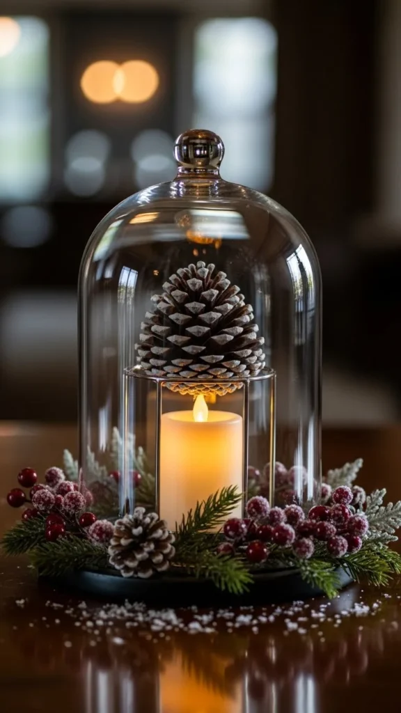 18.Pine-Cone Lanterns with Glass Cloche Covers
