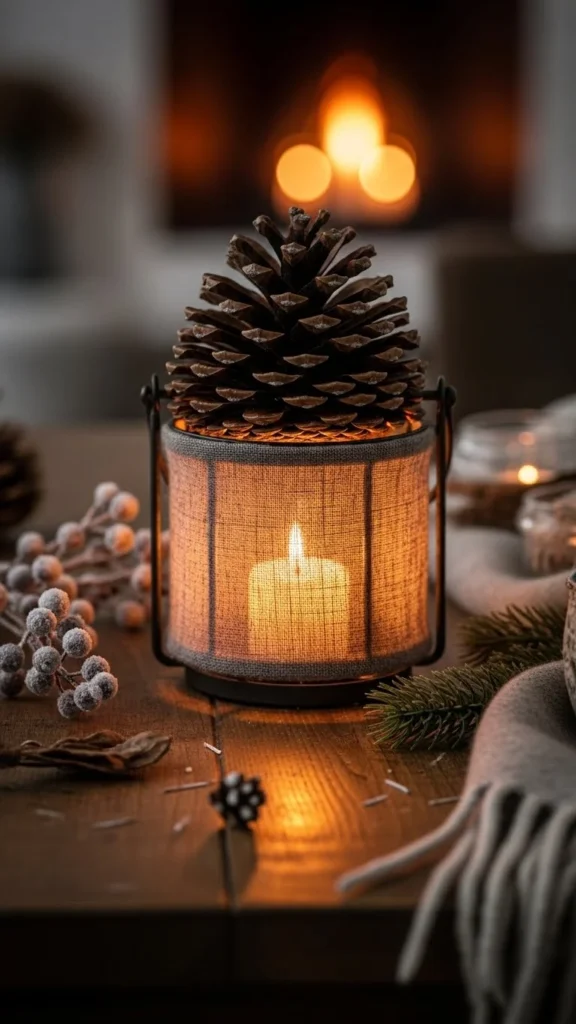 Pine-cone lanterns show how winter decor can stay simple, affordable, and warm at the same time. With basic jars, natural finds, and soft lighting, you can shape inviting spaces indoors and out. Try one idea or mix several. Save the materials for next year and adjust as your space changes. Small actions like these turn everyday winter evenings into something calm and welcoming.