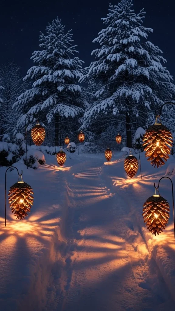 7.Outdoor Pathway Pine-Cone Lantern Lights