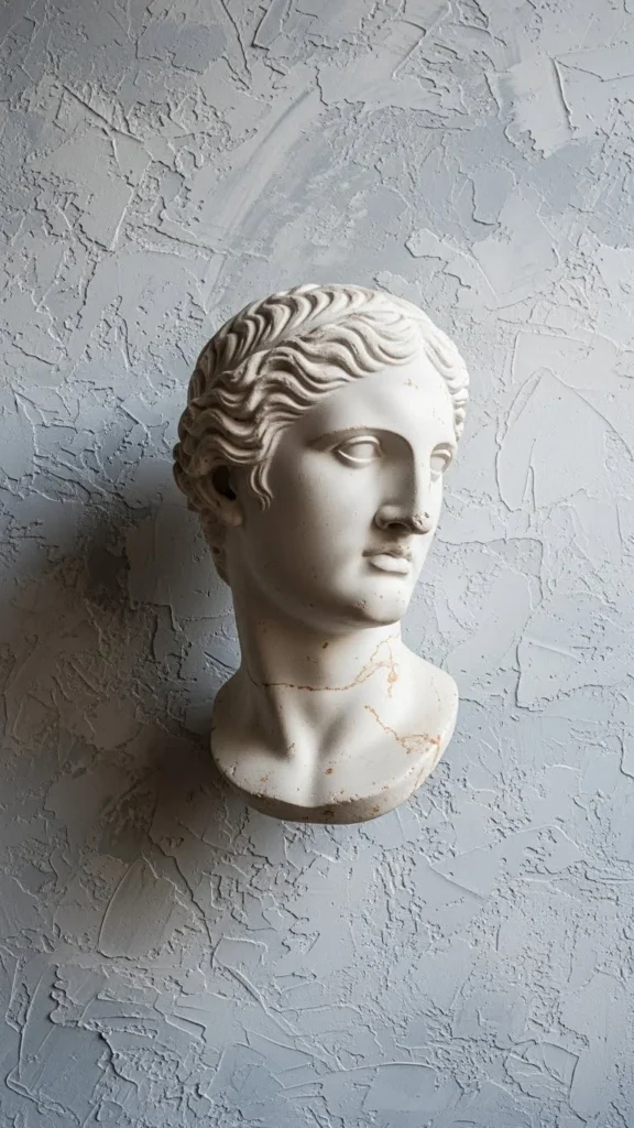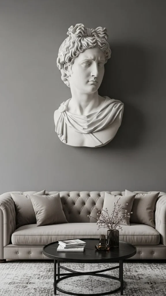 One well-placed bust creates a strong focal point. Choose a classical profile with clean lines. Mount it at eye level and give it space to breathe. Budget-friendly plaster replicas are widely available. Avoid crowding nearby decor. This setup suits living rooms and dining areas. Keep surrounding walls simple so texture stands out. If mounting feels intimidating, use a shallow wall shelf to support the bust instead.