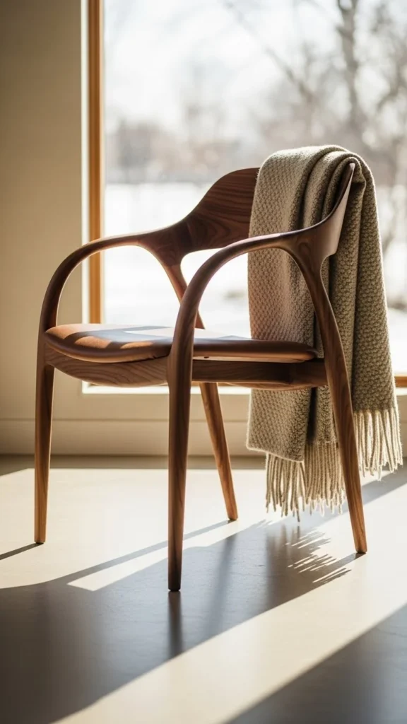Low-slung chairs feel grounded. They encourage slower movement during winter. Walnut frames keep them from feeling too casual.