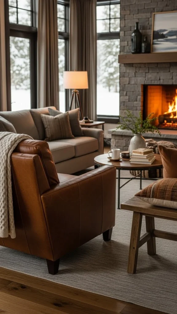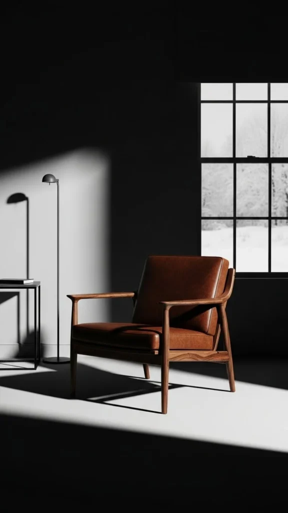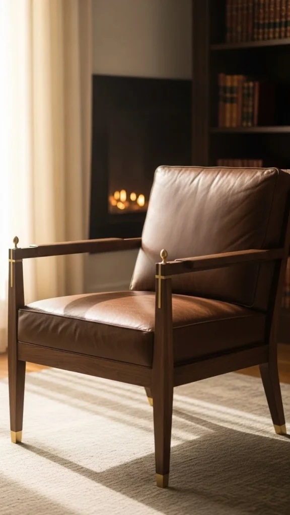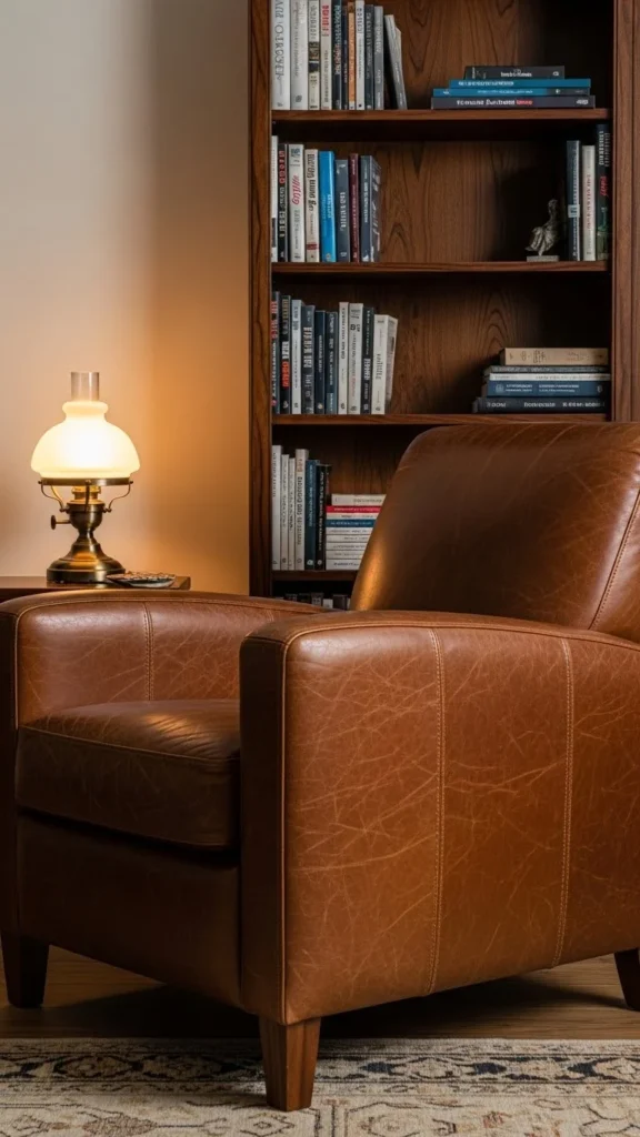 Position one near a floor lamp. Warm lighting highlights leather texture. Keep accessories minimal. A single side table is enough.