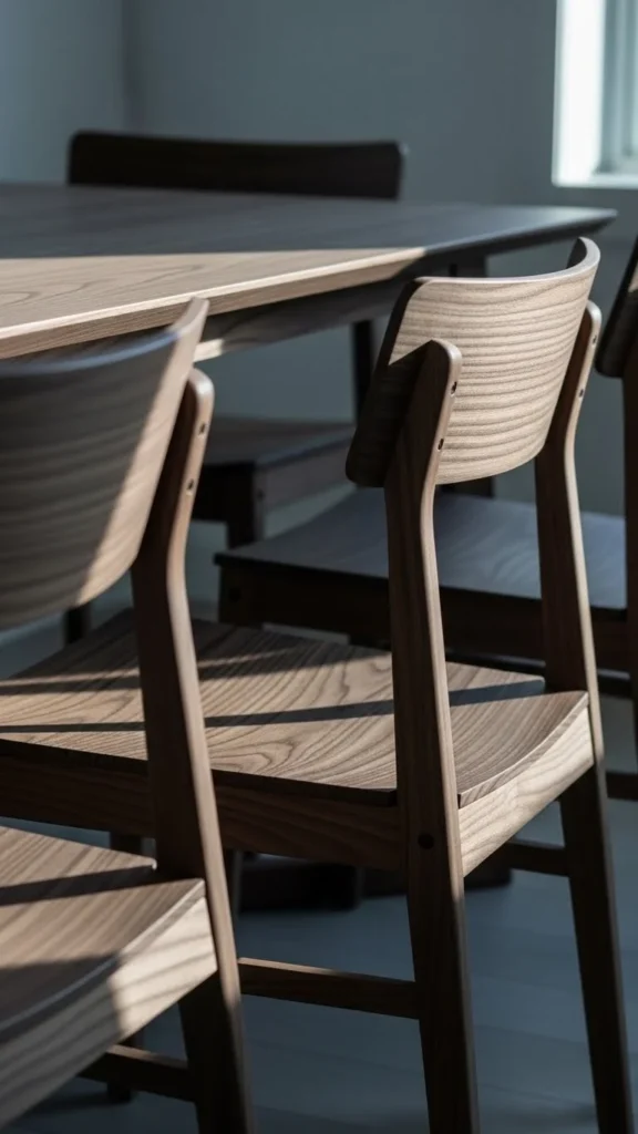 Minimal designs focus on shape and grain. These chairs work well in smaller spaces. Keep finishes matte to avoid glare. DIY refresh includes light sanding and natural oil.